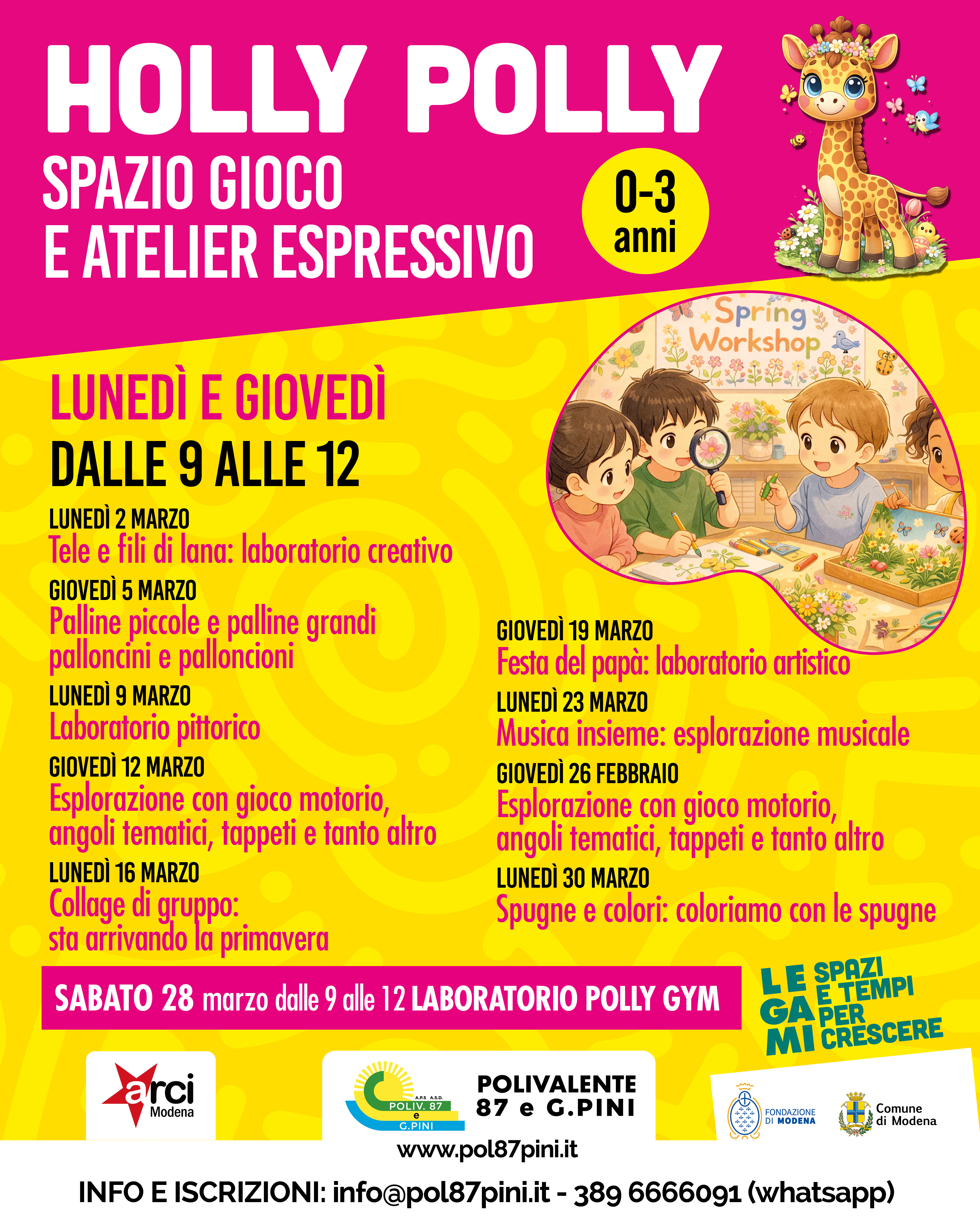 HOLLY POLLY -Spazio gioco aperto il lunedì-giovedì mattina dalle 9 alle 12 è gradita la prenotazione inviando una mail a info@pol87pini.it
